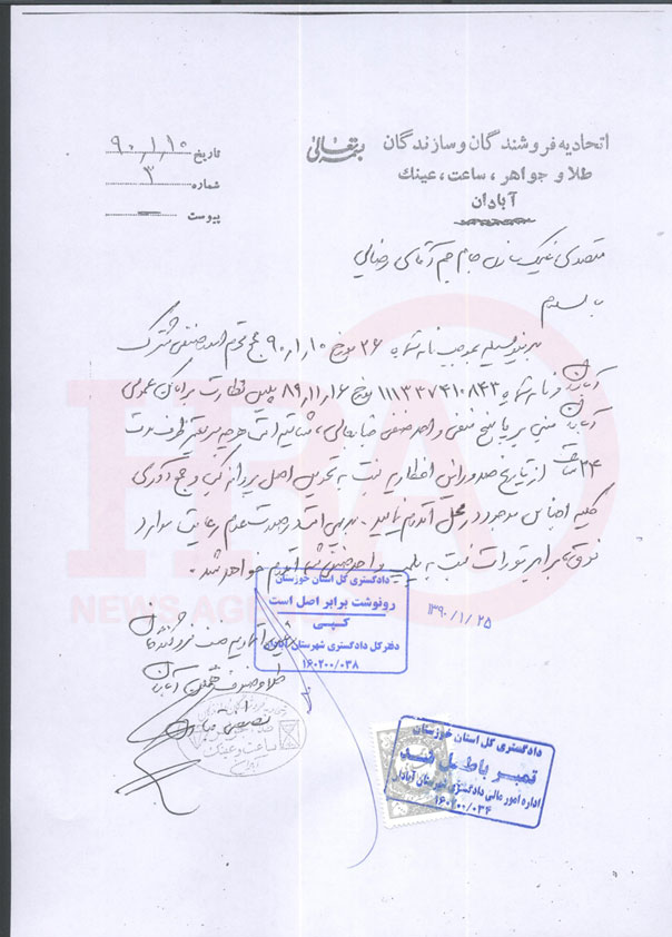 خبرگزاری هرانا – محل کسب یک شهروند بهایی در شهر آبادان با اخطاریه اتحادیه فروشندگان و سازندگان، طلا و جواهر، ساعت، عینک آبادان تعطیل شد.
